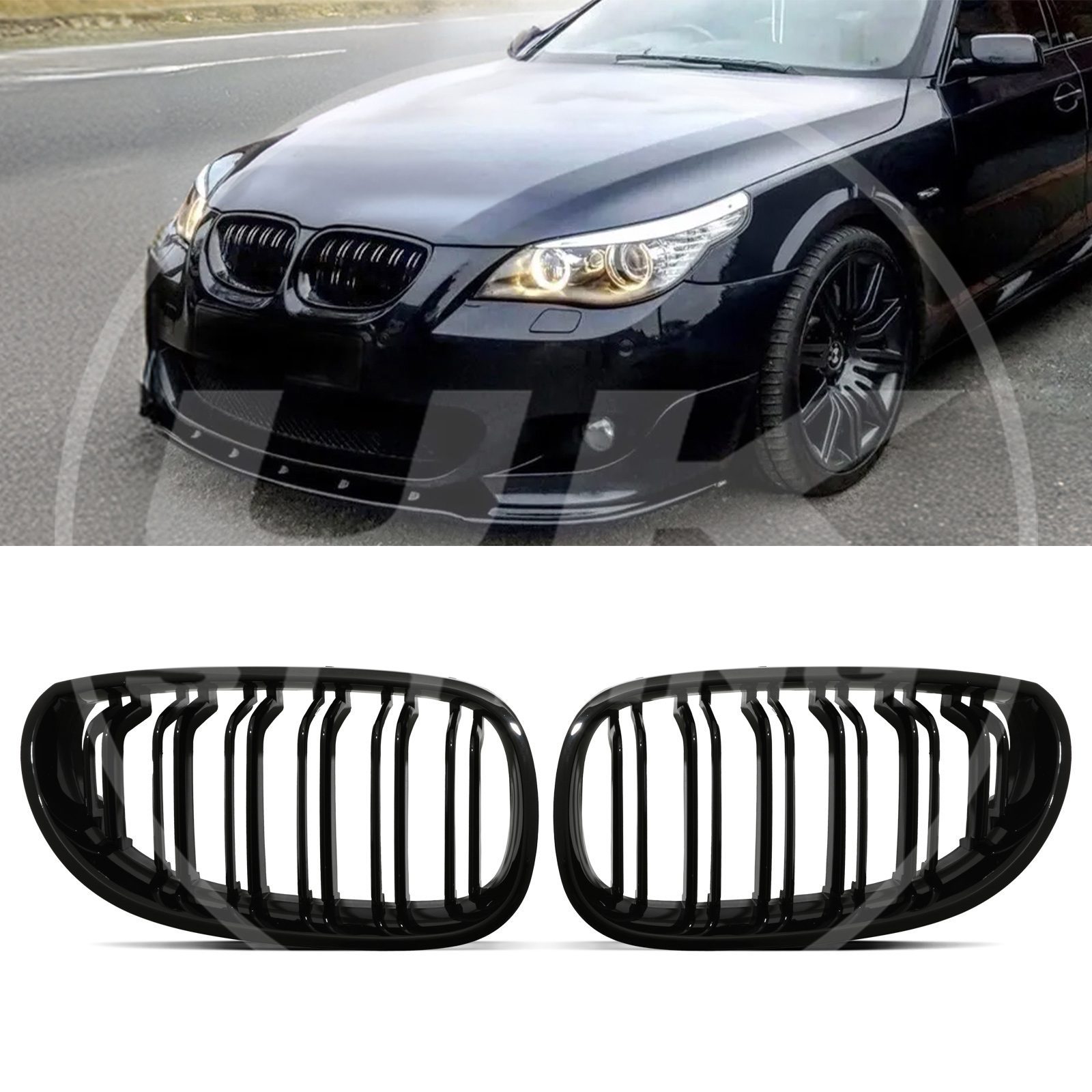 Gloss Black Double Bar Kidney Grille For BMW 5 Series E60 E61 04-10
