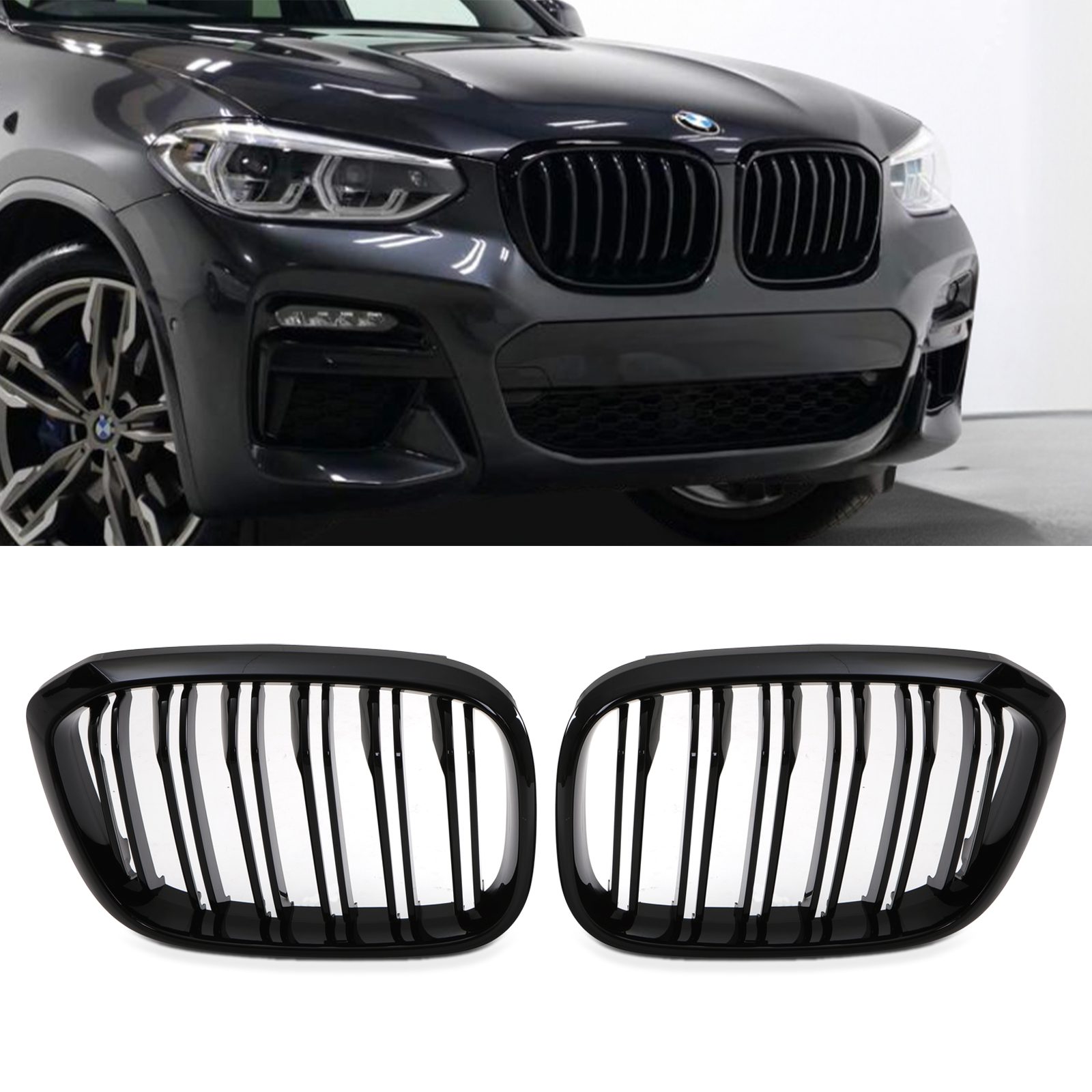 Gloss Black Double Slat Front Grilles For BMW X3 G01 18-21