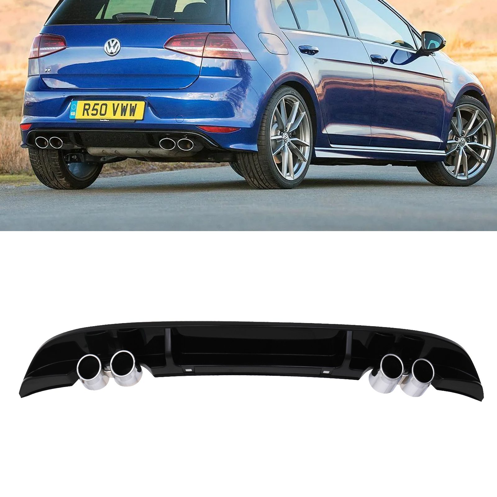 Gloss Black Quad Tip Rear Diffuser For VW Golf MK7.5 17-20