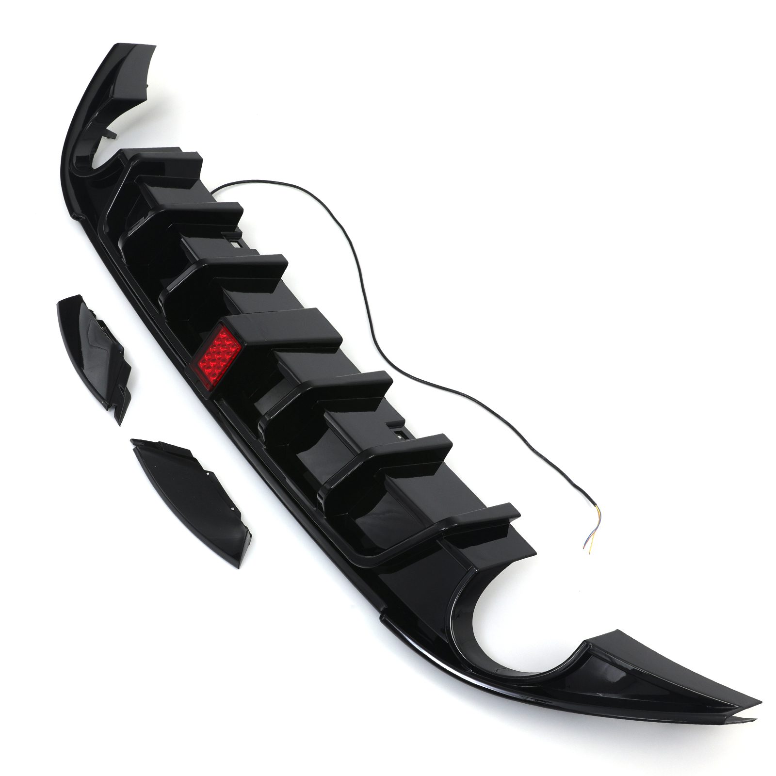 Gloss Black Rear Diffuser With LED Rain Light For VW Golf MK7 GTI/GTD 13-16