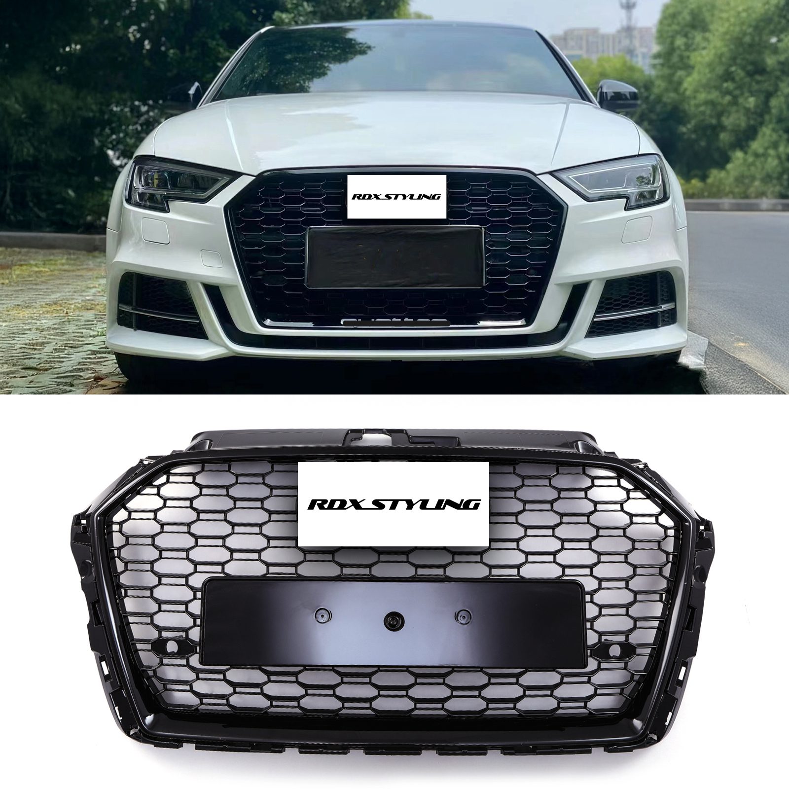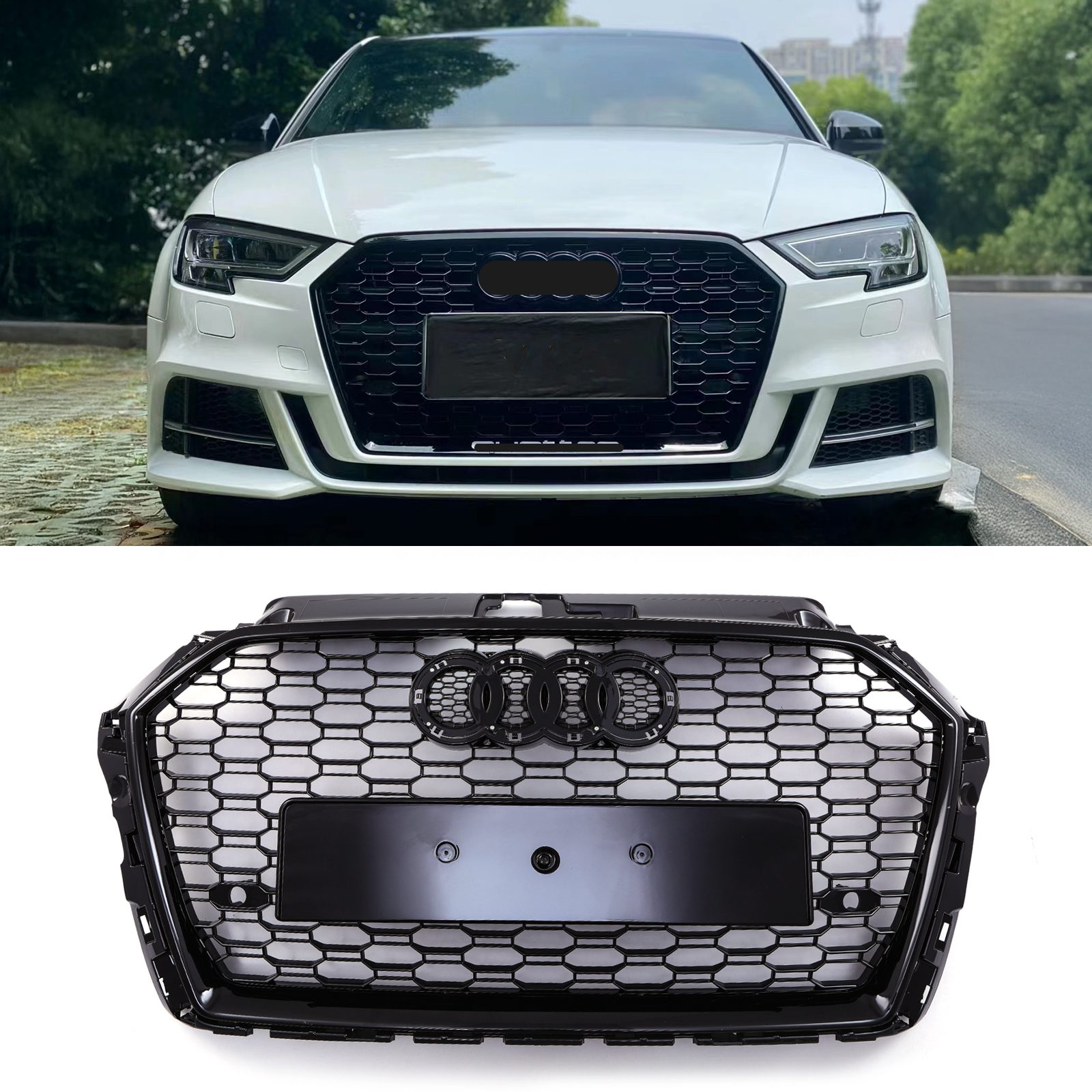 Gloss Black Front Grille Honeycomb RS3 Style for Audi A3 8V 17-20