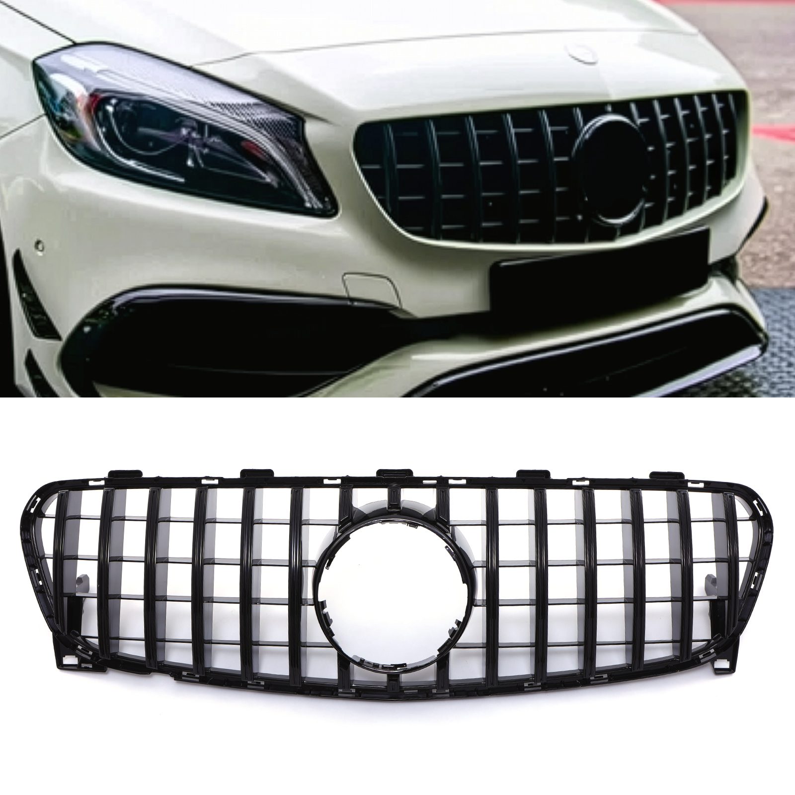 Gloss Black Grille GTR Panamericana Style For Mercedes GLA X156 17-19